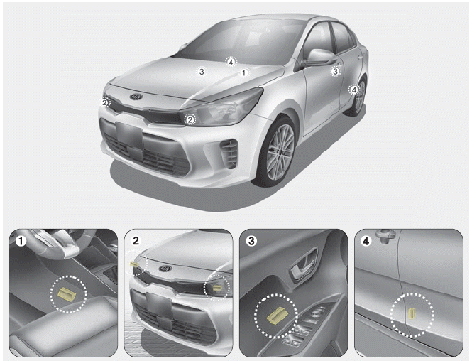 Problems may arise if the sensor installation angles are changed due to the deformation of the front bumper, body or B pillar where side collision sensors are installed. Have the vehicle checked and repaired by an authorized Kia dealer.