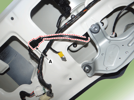 Disconnect the tailgate outside handle assembly connector (A).