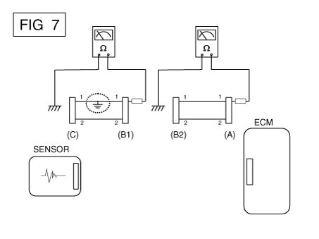 connector (A) and chassis ground, and between (B1) and chassis ground