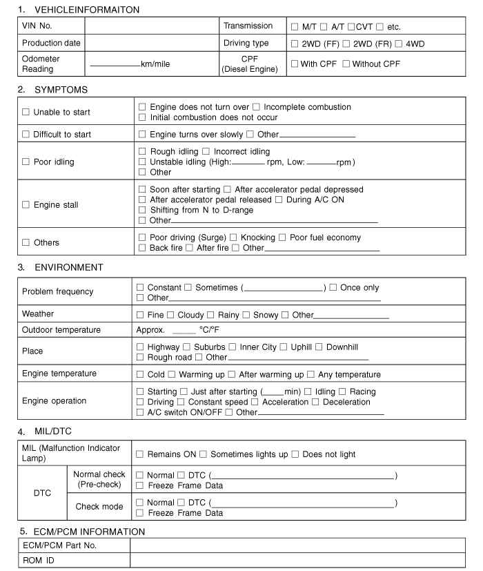 Inhibitor switch (A/T) or clutch start switch (M/T)