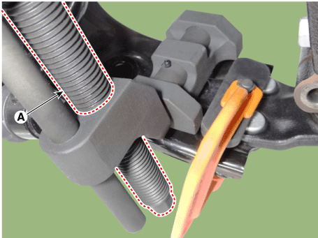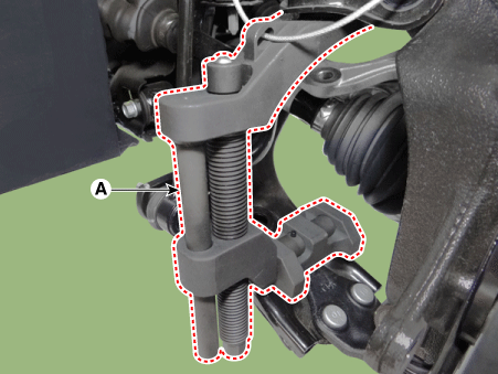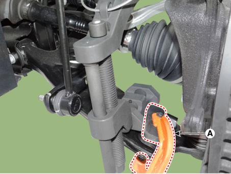 Tighten the main body bolt (A) slowly and remove the lower arm
