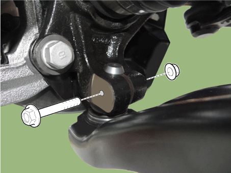 After removing bolts from the front knuckle, install and tighten