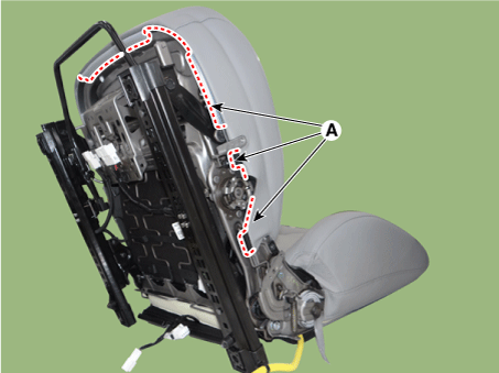 Remove the front seat cushion cover (A) from the front seat cushion frame.