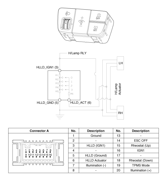 Kia Rio 2017-2020 YB Service Manual / Body Electrical System / Headlamp Leveling System / Headlamp Leveling Switch