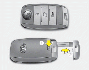 To remove the mechanical key, press and hold the release button and remove the mechanical key.