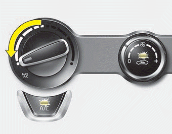 The MAX A/C mode is used to cool the inside of the vehicle faster. Air flow is directed toward the upper body and face.