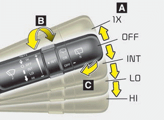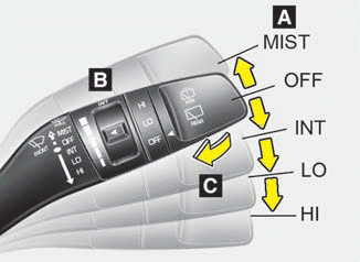 MIST : For a single wiping cycle, push the lever upward and release it. The wipers