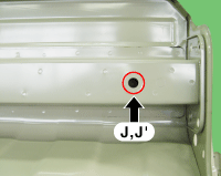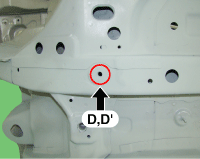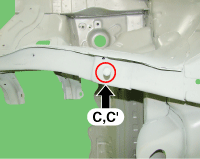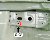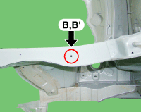 Hood hinge mounting hole (Ø11) Fender apron upper member tooling hole (Ø6.6) Front shock absorber hou ...