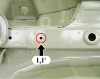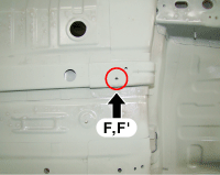 Center floor side member extension tooling hole (Ø6)